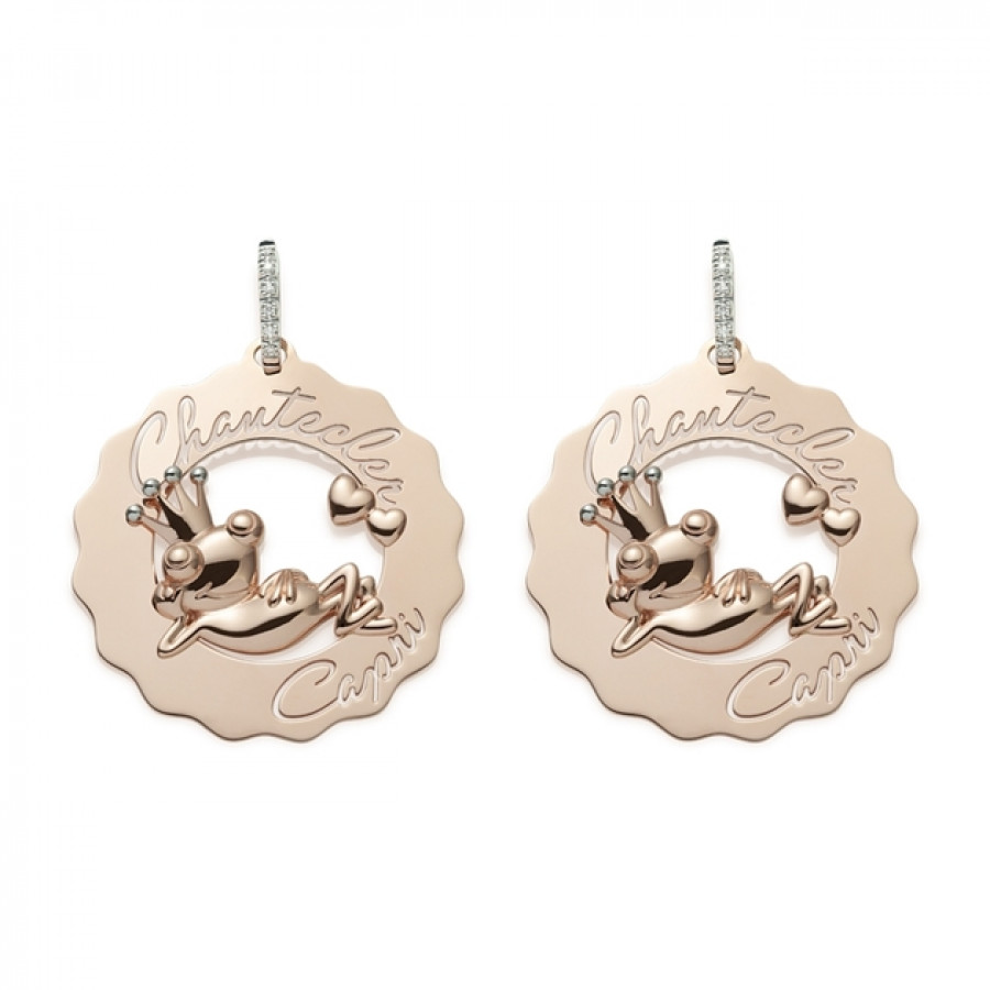 Orecchin Ciantecler logo grandi principe ranocchio innamorato in oro rosa e diamanti, appartenente alla collezione Logo.
