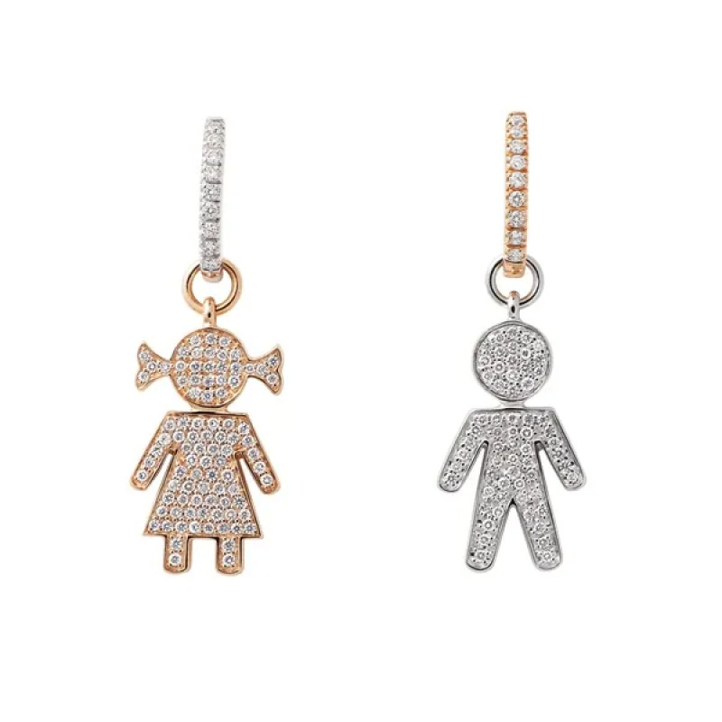 Orecchini Easy by Crivelli con bimba e bimbo in oro rosa e bianco con diamanti