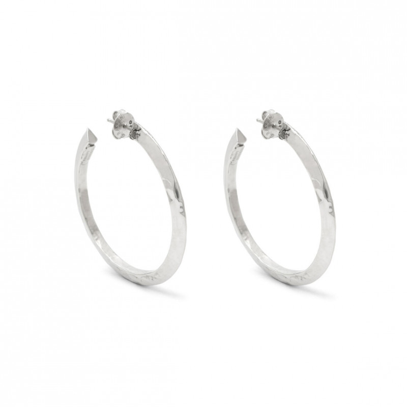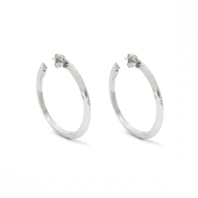 Grandi orecchini a cerchio in argento con una texture che regala una straordinaria lucentezza.