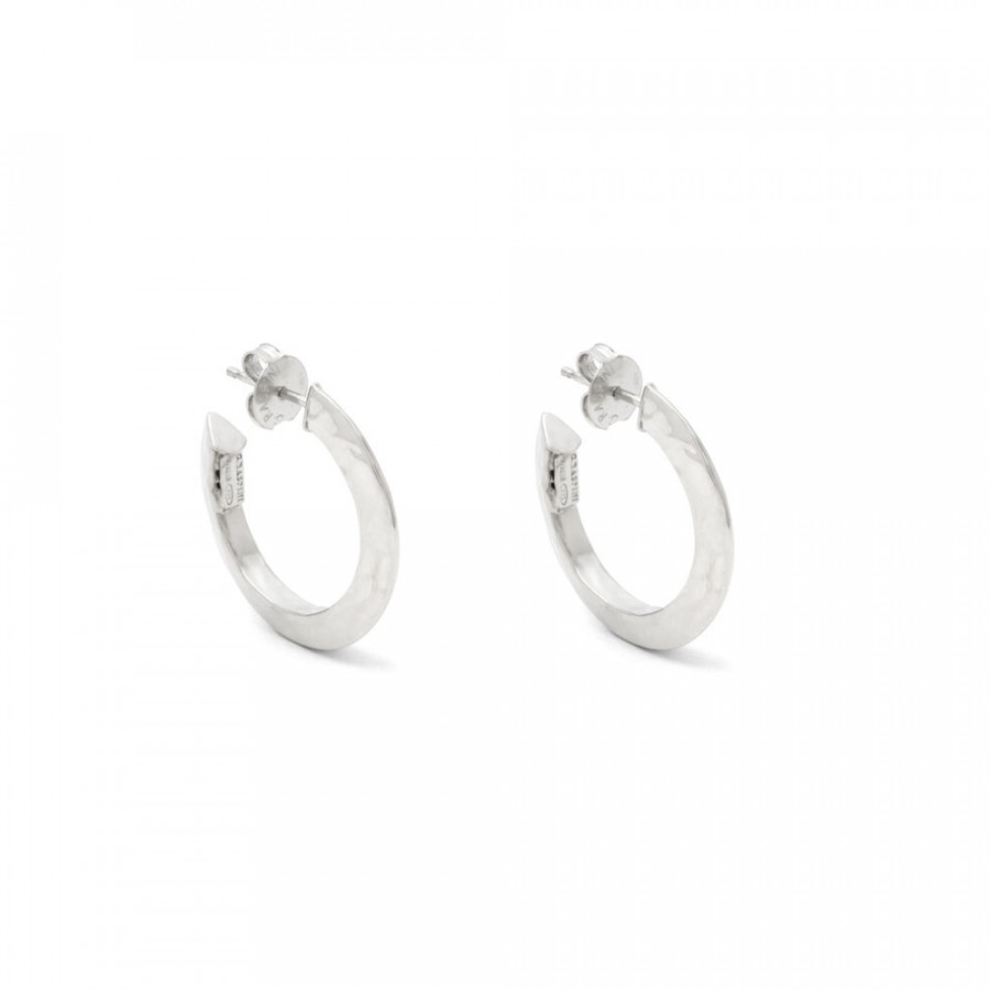 Giovanni Raspini esprime con classe l'abilità di interpretare il design contemporaneo attraverso i gioielli. Negli orecchini a cerchio Blade, la forma perfetta e la texture martellata regalano una lucentezza straordinaria. Fatti in azienda con lastra d'argento martellata a mano.