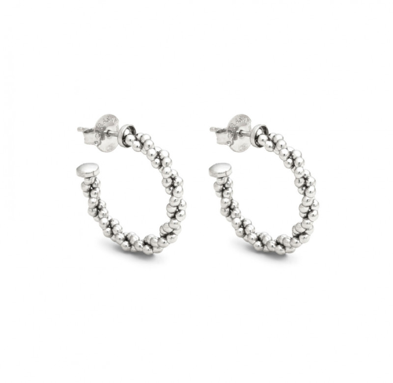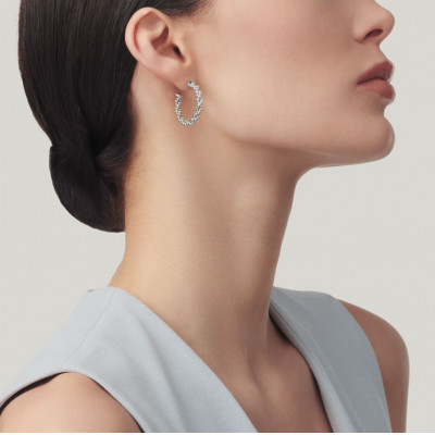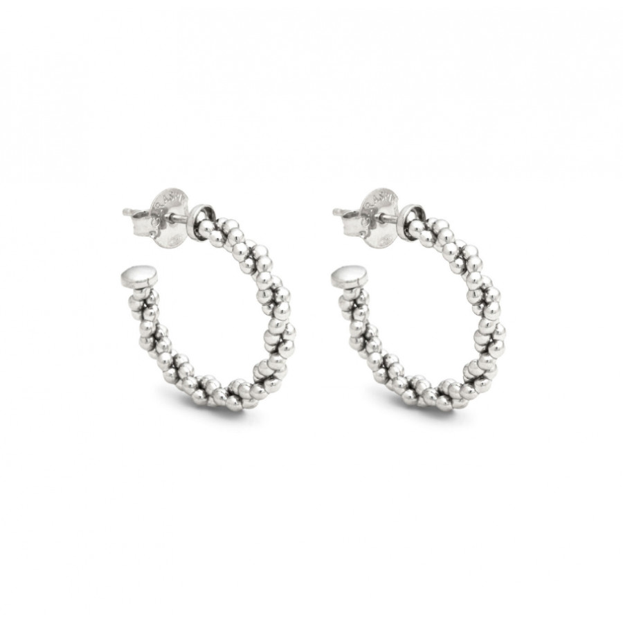 Giovanni Raspini propone questi piccoli ed eleganti orecchini a cerchio in argento fuso a cera persa. Raffigurano una catena intrecciata, con effetto rigido. Fatti a mano in azienda per una donna che ama la bellezza dell'unicità.