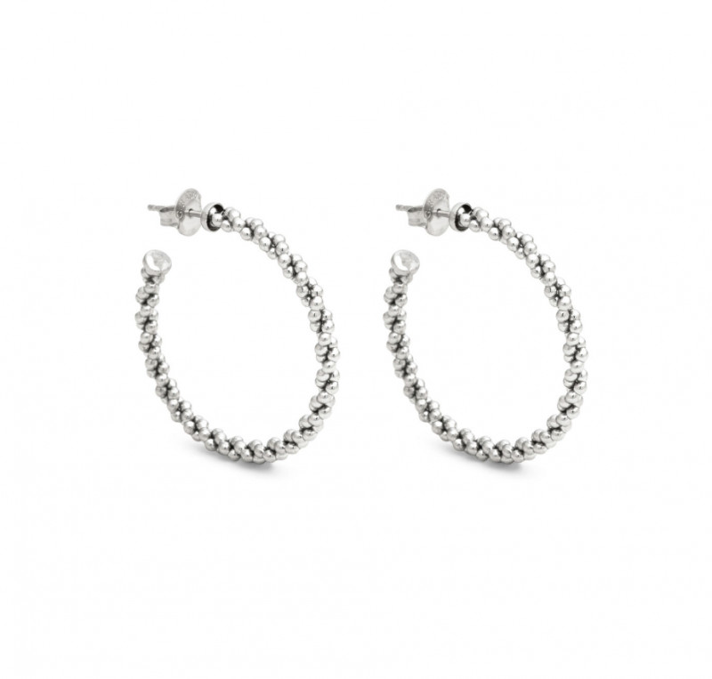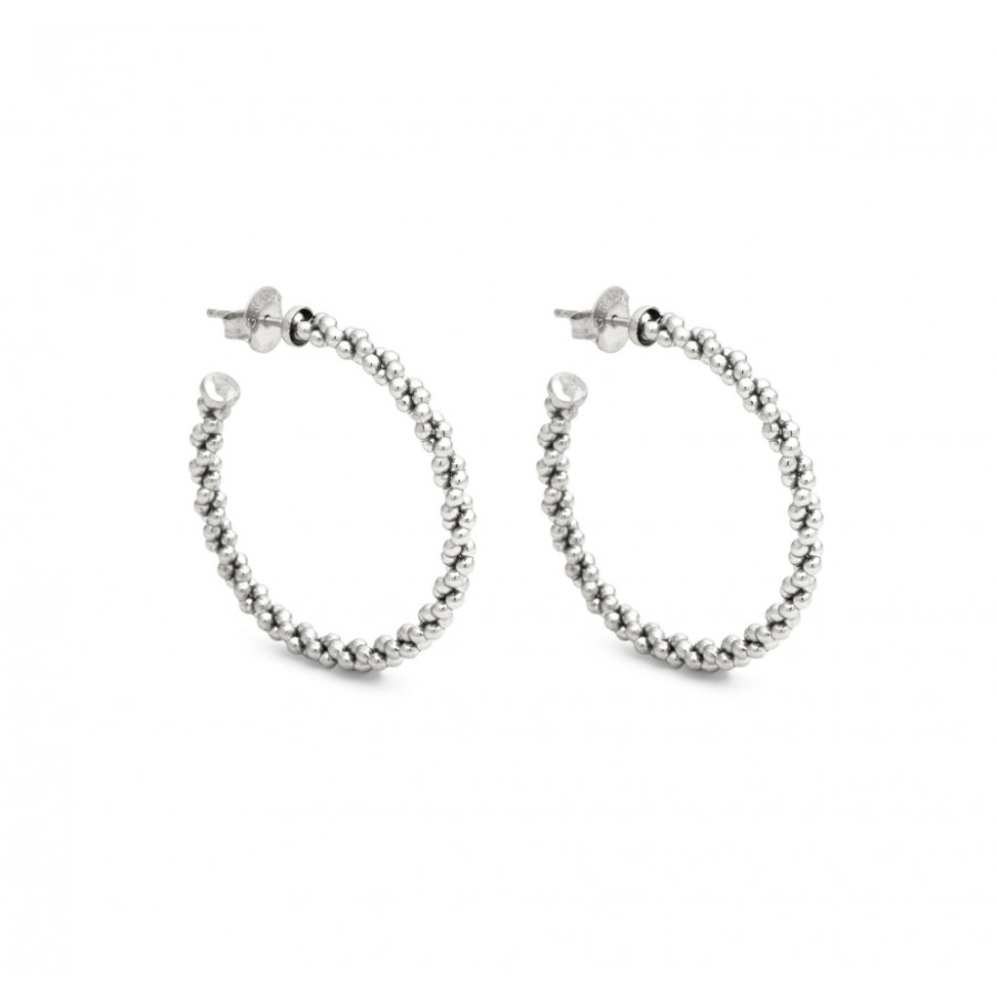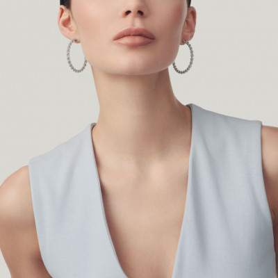 Giovanni Raspini propone questi grandi ed eleganti orecchini a cerchio in argento fuso a cera persa che raffigurano una catena intrecciata, con effetto rigido. Per una donna che ama la bellezza dell'unicità. Fatti a mano in azienda