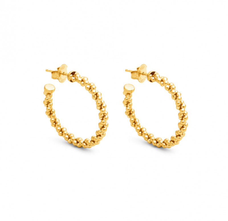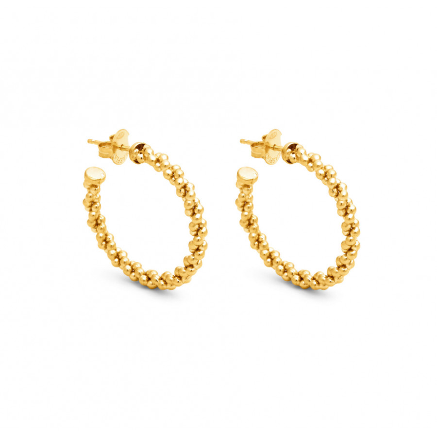 Per una donna che ama la bellezza dell'unicità, Giovanni Raspini propone questi eleganti orecchini a cerchio in argento dorato, fuso a cera persa che raffigurano una catena intrecciata, con effetto rigido. Fatti a mano in azienda.