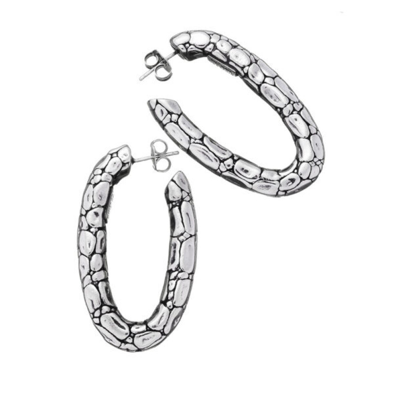 Texture di coccodrillo per un evergreen di Giovanni Raspini dai meravigliosi volumi plastici. L'eleganza assoluta degli orecchini Crocodile in argento, leggerissimi grazie alla tecnica dell'elettroformatura.
