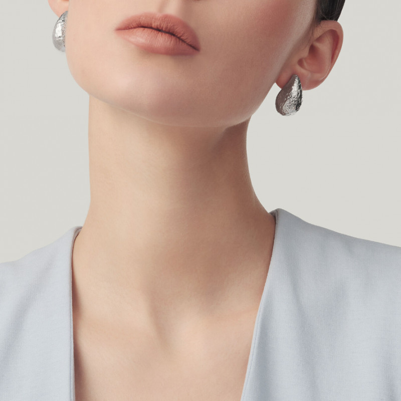 Bellezza contemporanea. Con questi orecchini d'argento di grande eleganza e leggerezza, Giovanni Raspini esplora il tema della goccia, decorata con la texture martellata. Eleganti, versatili e glamour, sono realizzati completamente a mano in azienda.