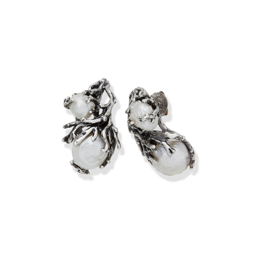 Collezione Mari del Sud - L'argento fluisce in forme coralline e si sposa con le perle naturali d'acqua dolce dai riflessi bianco opalescenti.
