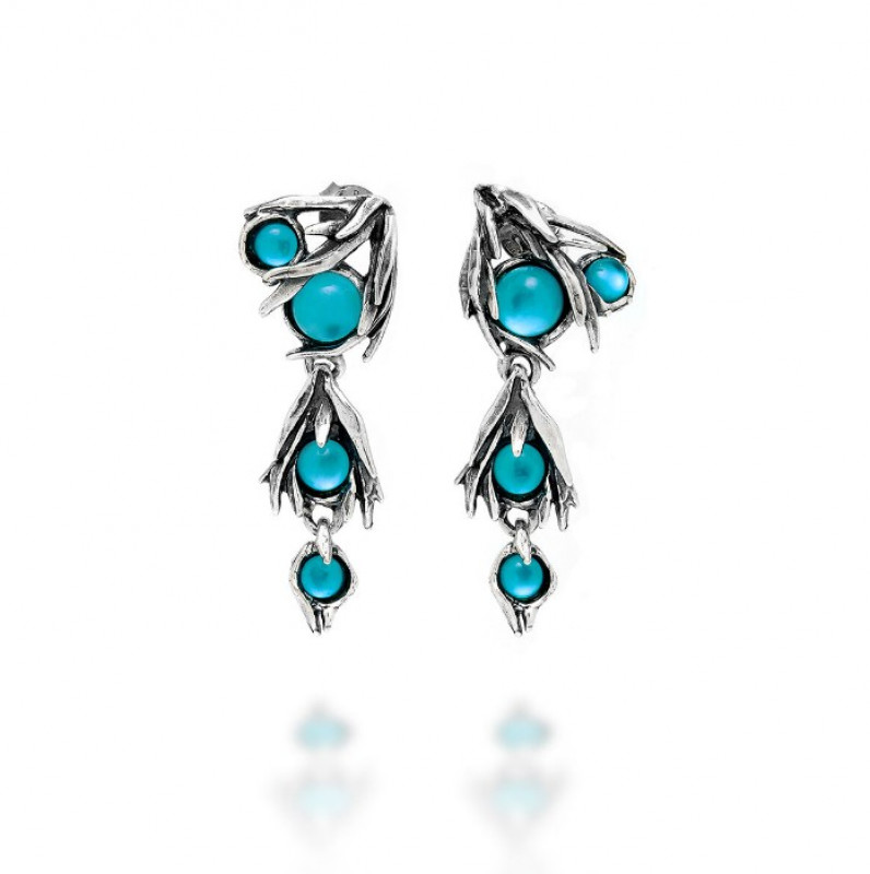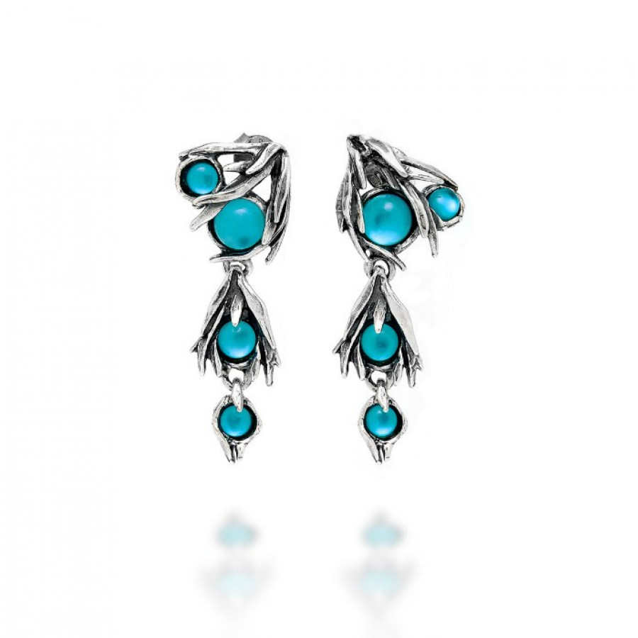 Orecchini Cascata Posidonia in argento 925, madreperla e quarzo