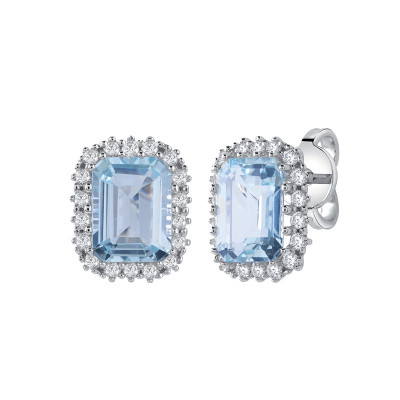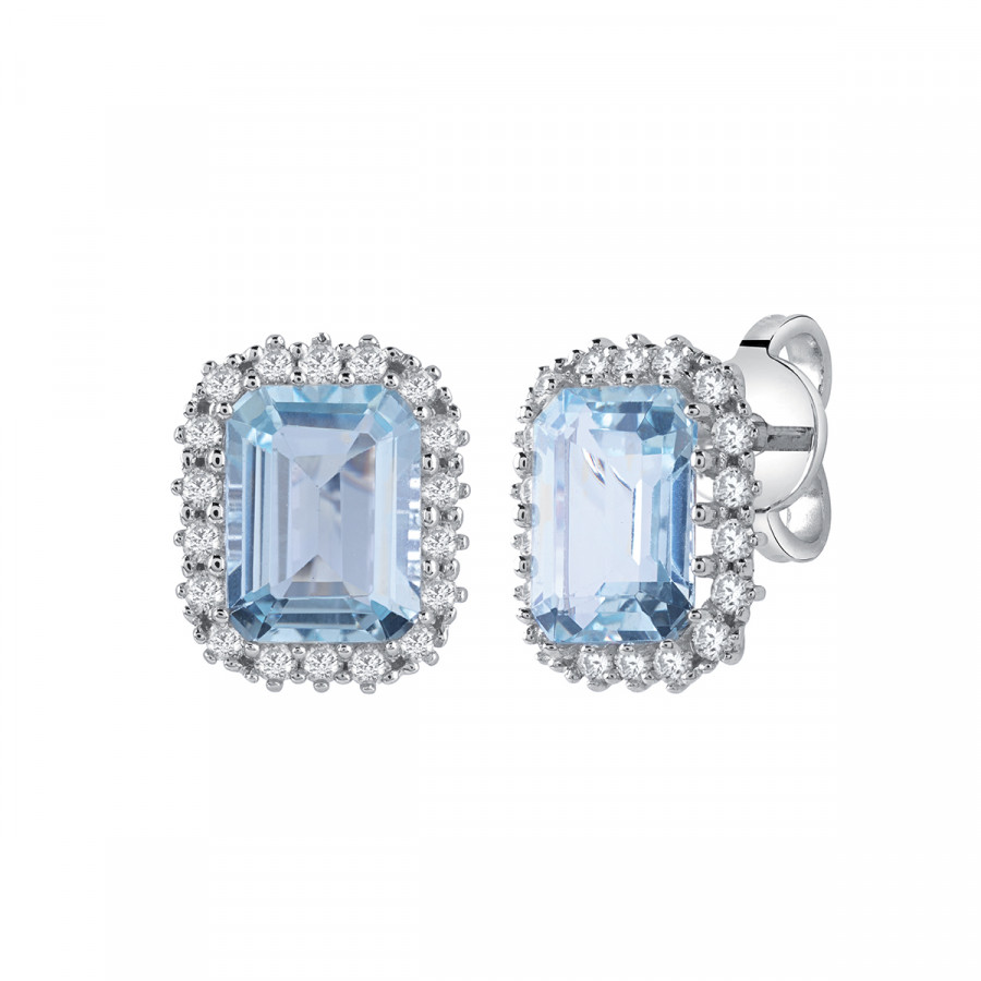 Orecchini in oro bianco con diamante e acquamarina, della collezione Capri di Salvini.