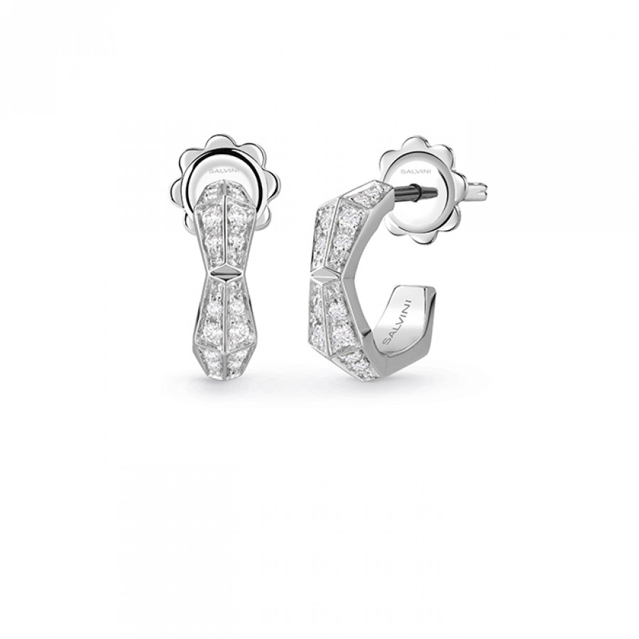 Orecchini Salvini gioielli in oro bianco con diamanti e pavé hyceramic rosso della collezione Eva.