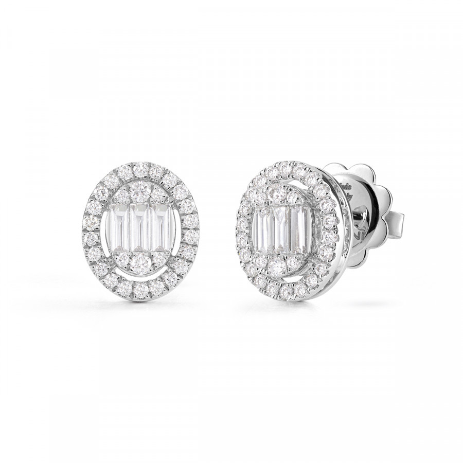Orecchini ovale in oro bianco con diamanti, della collezione Magia di Salvini.