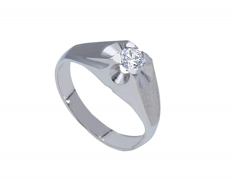 Anello da uomo solitario zirconia cubica in oro bianco peso 6,90 g