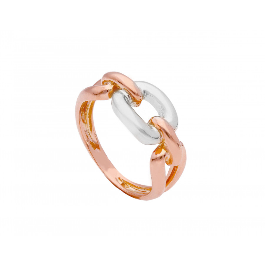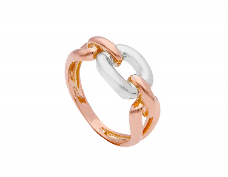 Anello donna in oro rosa e bianco maglia catena grumetta