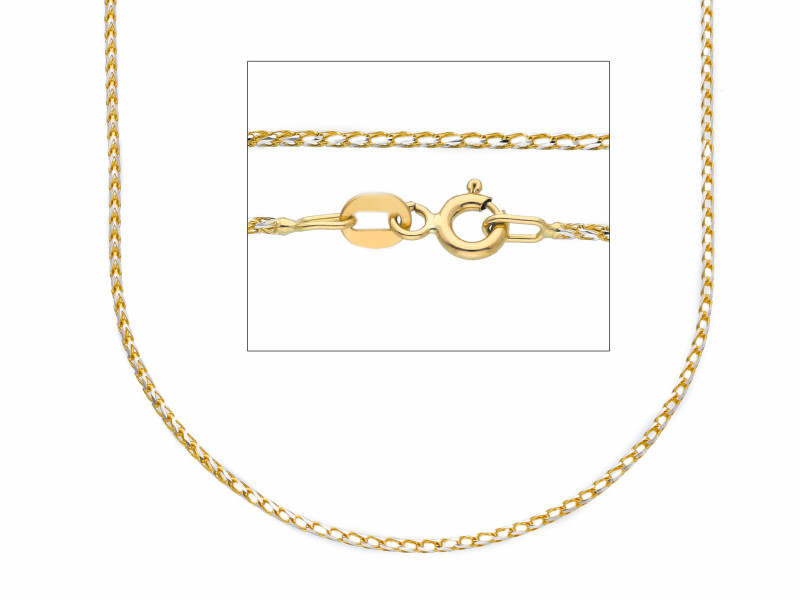 Catena spiga in oro giallo e bianco 18kt filo 0,35, ideale da regalare o da indossare per un evento speciale.