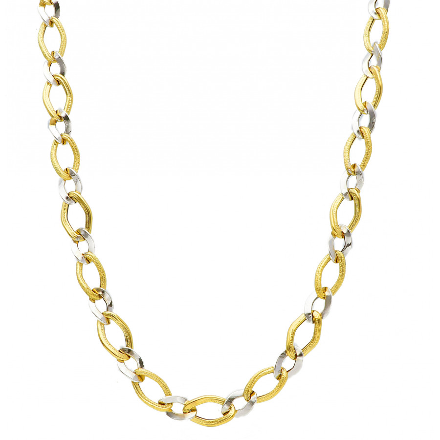 Girocollo in oro giallo e oro bianco maglia catena grumetta 8,20 g