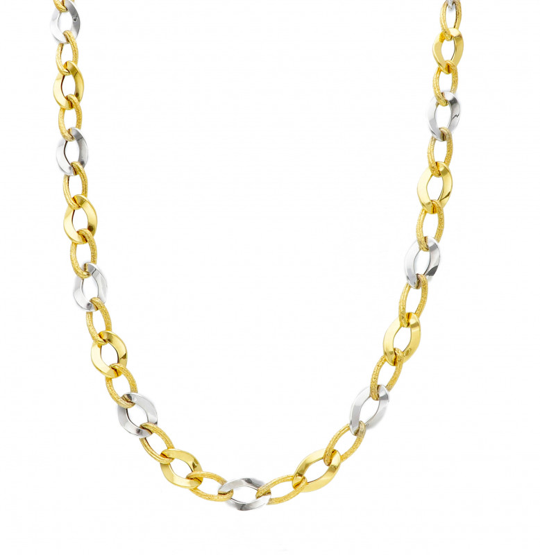 Girocollo in oro giallo e bianco maglia catena grumetta 6,40 g