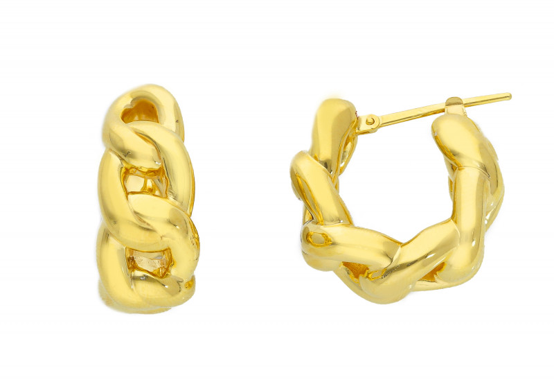Orecchini donna a cerchio in oro giallo perno clips maglia catena grumetta