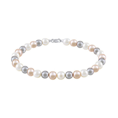 Bracciale Bliss Paradise in oro bianco e perle multicolor, sfere, 5.5 mm, lunghezza 18 mm