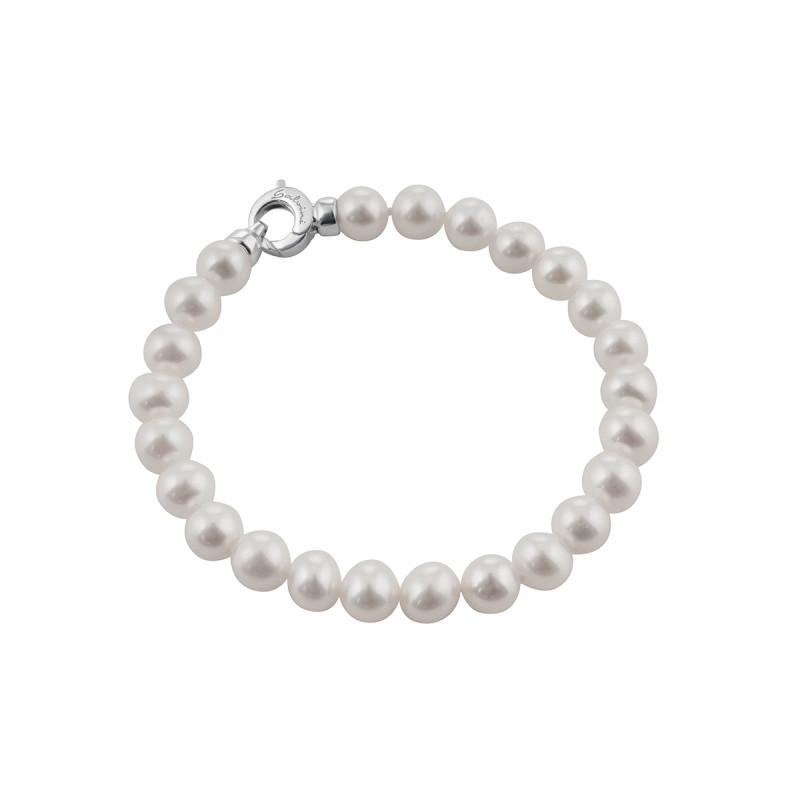 Bracciale in argento con perle freshwater bianche, della collezione Bali di Salvini.