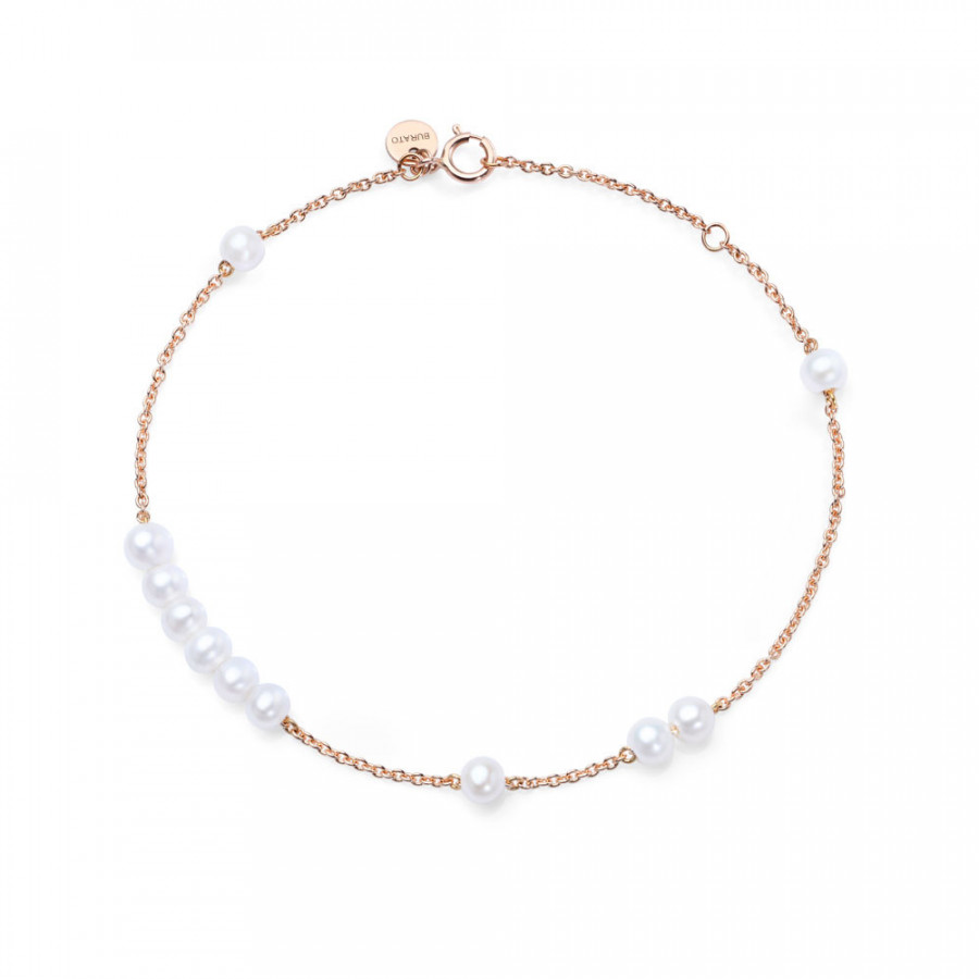 Bracciale morbido in oro rosa e 11 perle orientali della collezione Sweet Pearls di Burato Gioielli.
