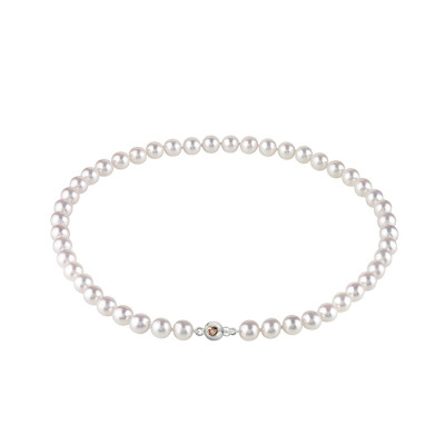 Collana in oro bianco con perle giapponesi bianche e chiusura con diamante 700/750