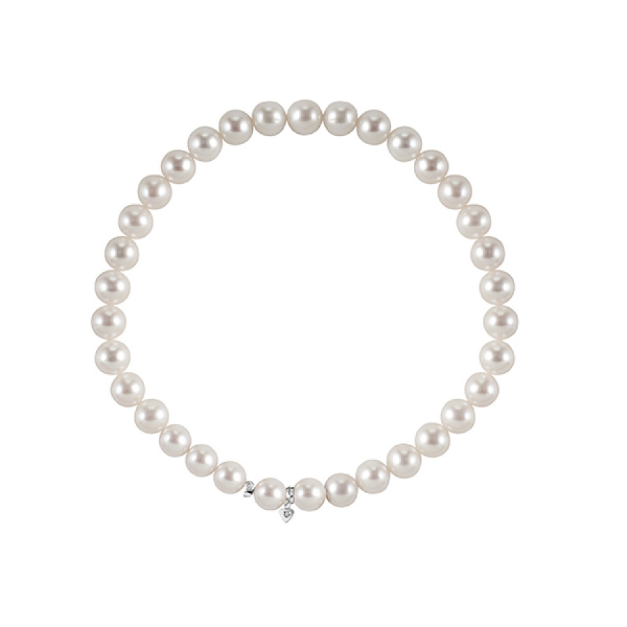 Bracciale Salvini gioielli in oro bianco con perle giapponesi bianche e chiusura con diamante, della collezione Le Perle Salvini
