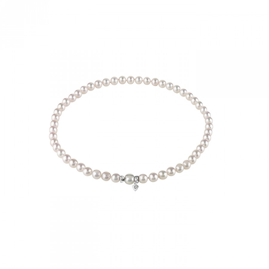 Collana Salvini gioielli in oro bianco con perle giapponesi bianche e diamante, della collezione Le Perle Salvini