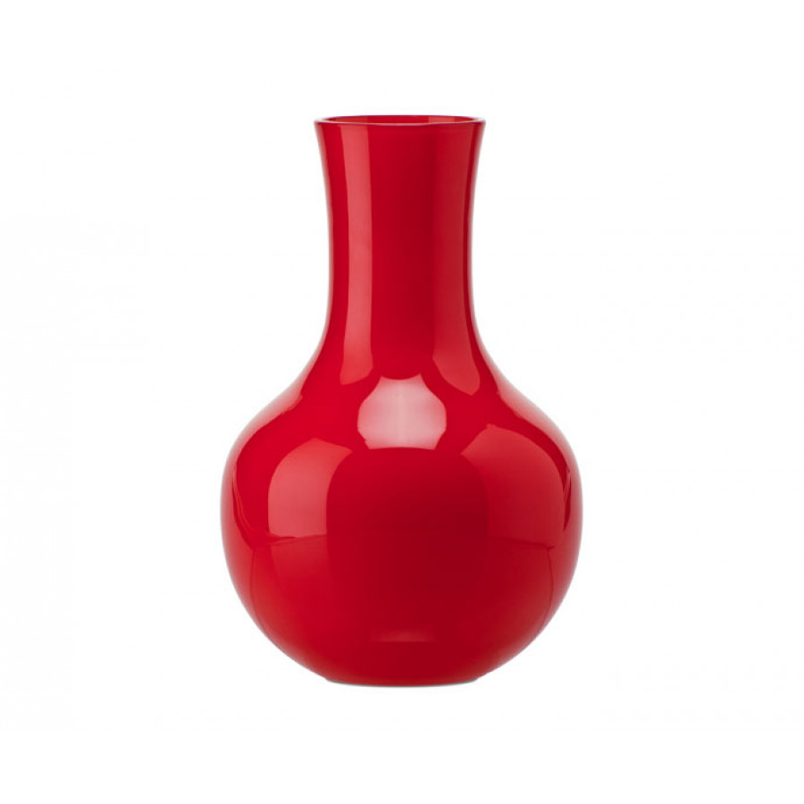 Vaso in vetro opaco soffiato lavorato a mano. Questa versione si presenta con un brillante color rosso corallo.