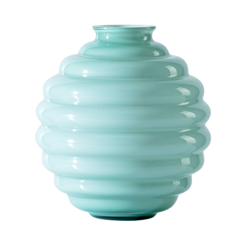 Vetro opalino soffiato e lavorato a mano, ottenuto dalla sovrapposizione del lattimo con altri vetri.