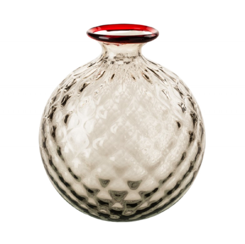Vaso in vetro soffiato lavorato a mano con la tradizionale tecnica della lavorazione a Balloton, decorato con filo riportato a caldo sulla parte superiore dell’oggetto.