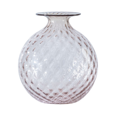 Vaso Venini Monofiori Balloton lavorato a mano color Rosa Cipria / Rosso Sangue di bue.