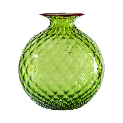 Vaso Venini Monofiori Balloton 100.18 lavorato a mano color Rosso / Verde Erba.
