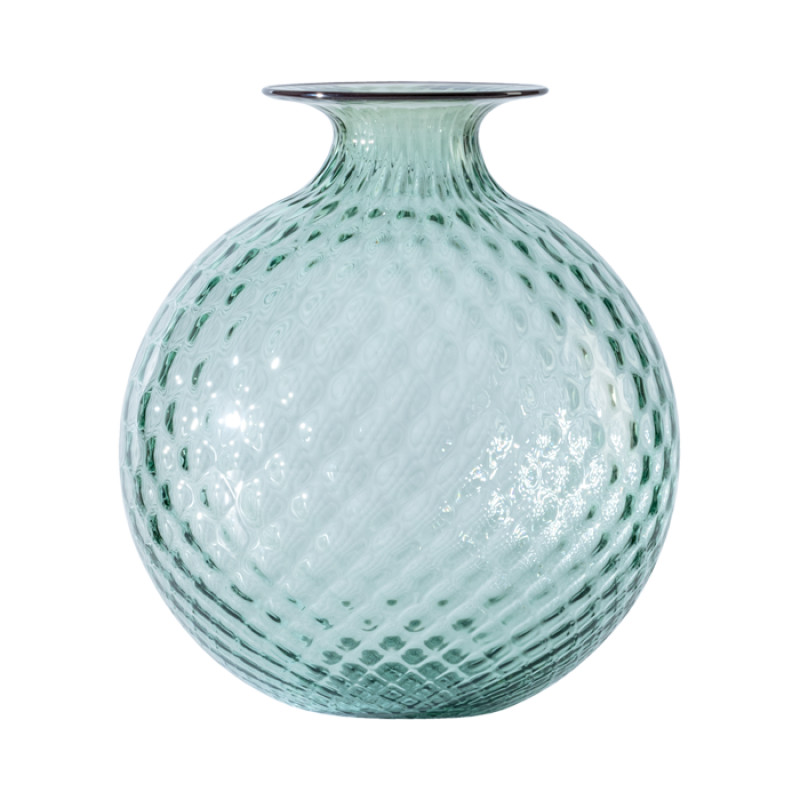 Vaso Venini Monofiori Balloton 100.29 lavorato a mano color Rosso Sangue di bue / Verde Rio.