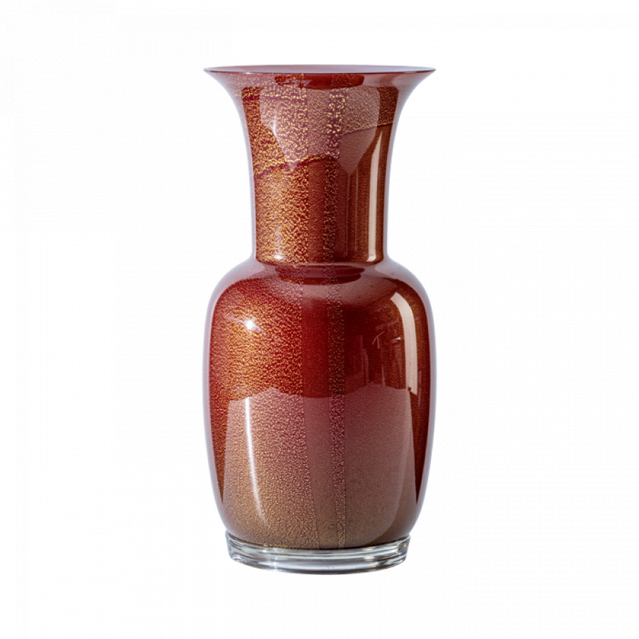 Vaso Venini Opalino 706.24 lavorato a mano color Rosa Cipria / Rosso Sangue di bue