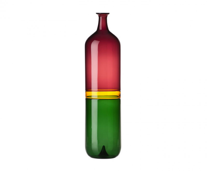 Vaso decorativo in vetro soffiato e lavorato a mano con tecnica ad incalmo.