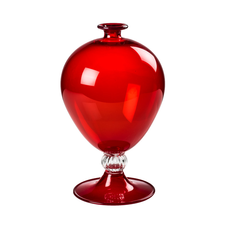 Vaso Venini Veronese lavorato a mano color cristallo / rosso