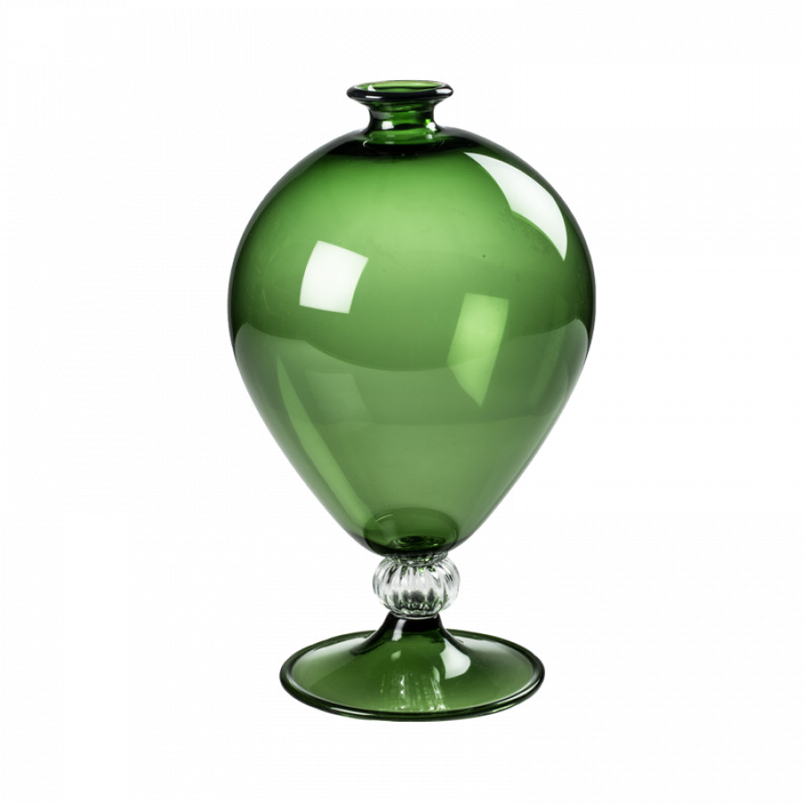 Vaso Venini Veronese lavorato a mano color cristallo / verde mela