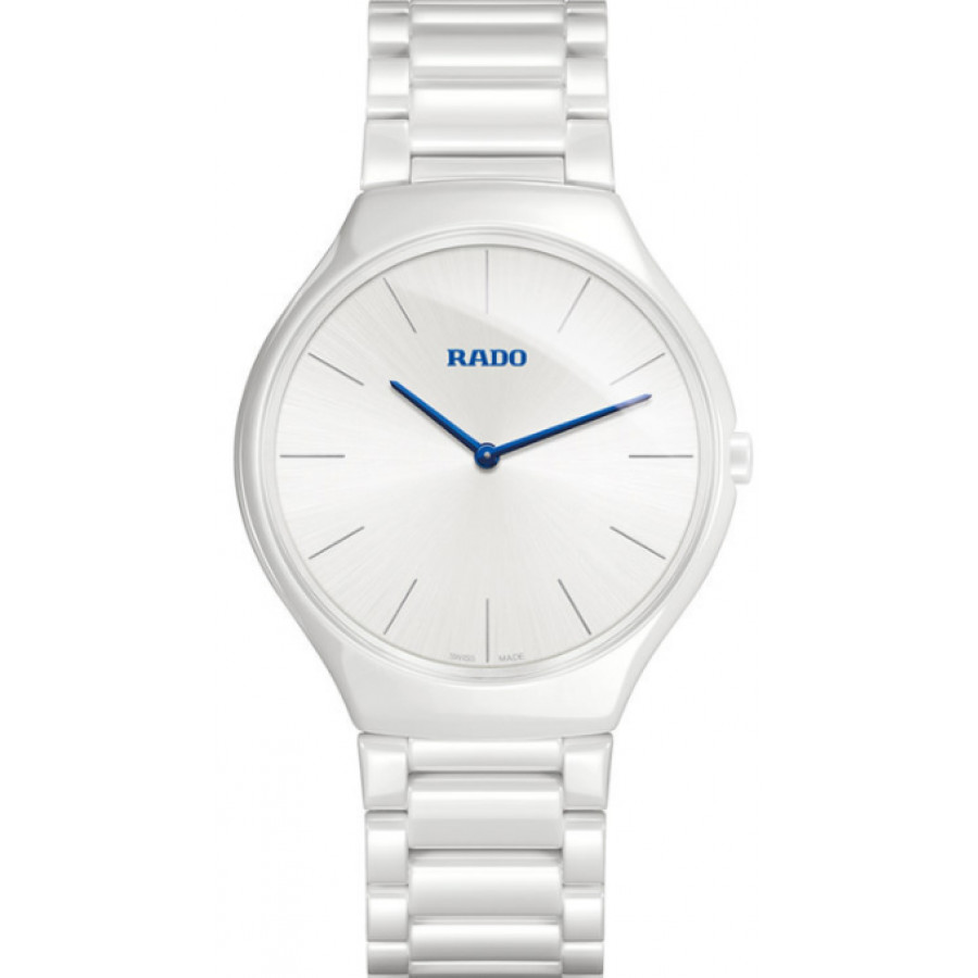 Il True Thinline potrebbe essere considerato l'ultimo segnatempo Rado. Introdotti per la prima volta nella collezione nel 2011, questi orologi al quarzo sono i più sottili di Rado, i primi a presentare l'innovativa cassa monoblocco e sono presentati interamente in ceramica high-tech. Con leggerezza, resistenza ai graffi e comfort garantito, sono progettati per resistere alla prova del tempo.