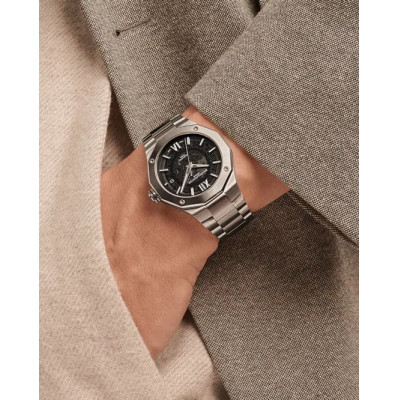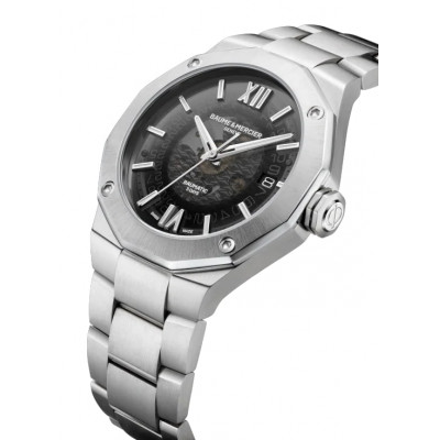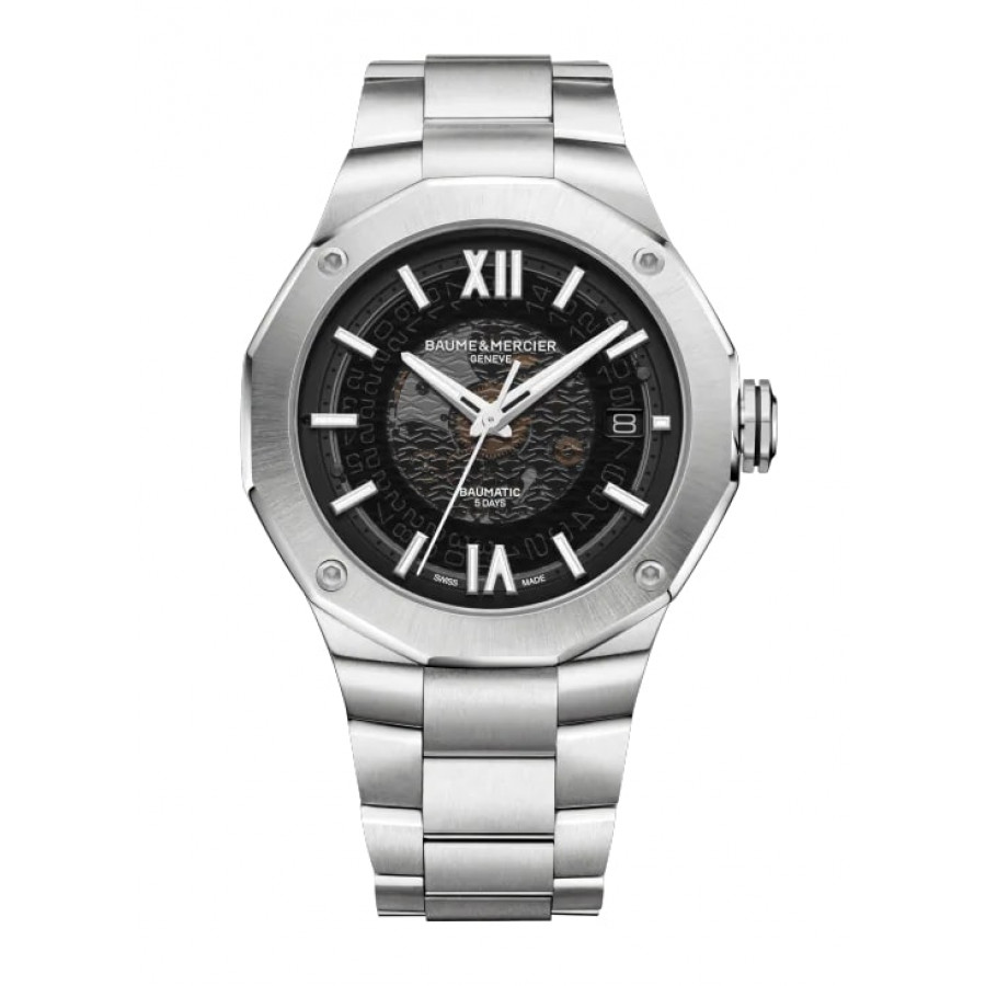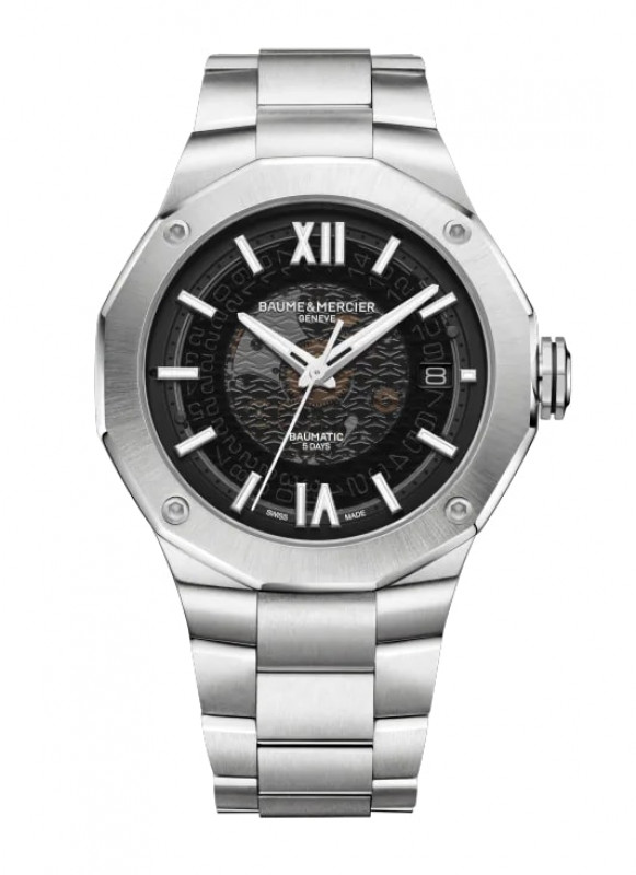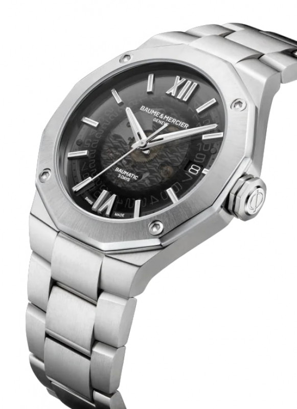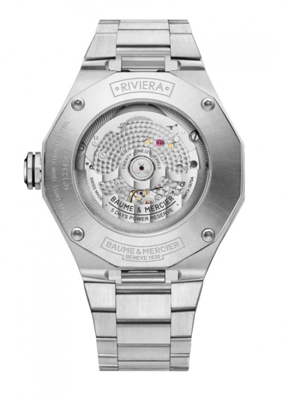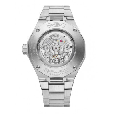 La versione 2022 del Riviera Baumatic è disponibile con quadrante in vetro zaffiro grigio fumé e bracciale integrato in acciaio. La decorazione introdotta nel 2021 è divenuta il marchio distintivo di questi modelli, ognuno dei quali è dotato di un movimento di Manifattura Baumatic. La sua trasparenza offre la vista dei ruotismi del calibro Baumatic dalle prestazioni collaudate. Impeccabile non solo dal punto di vista tecnico, questo segnatempo cerca di soddisfare le aspettative dei suoi futuri proprietari mirando all’eccellenza, allo stile, alla comfort e alla coerenza di tutti i suoi elementi. In poche parole: incarna la visione che la Maison ha dell’orologeria maschile.
