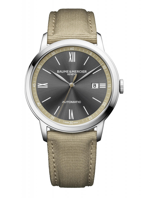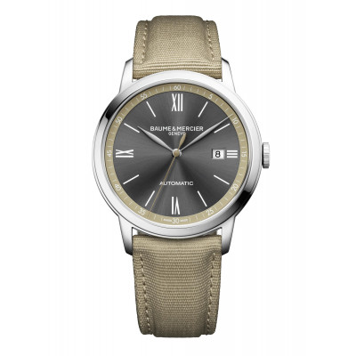 Il Baume & Mercier Classima 10695 offre un look casual grazie al suo quadrante grigio ardesia con finitura satinata soleil e flangia color sabbia. È accompagnato da un cinturino intercambiabile in tela sabbia dallo stile ispirato al deserto, ideale per tutti gli avventurieri urbani.