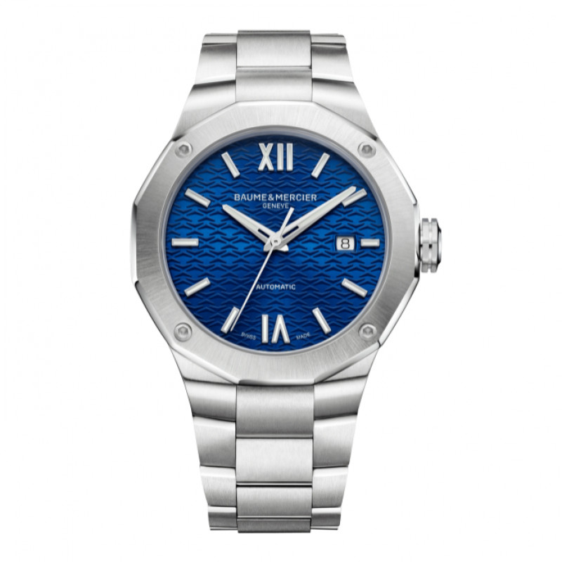 Sportivo, elegante, casual, un Riviera eclettico e sfaccettato, ideale per le personalità più diverse. Dotato di movimento automatico “Swiss Made”, presenta una cassa dodecagonale, un quadrante blu ornato da un motivo esclusivo e un bracciale in metallo. La scelta perfetta per chi cerca la versatilità.