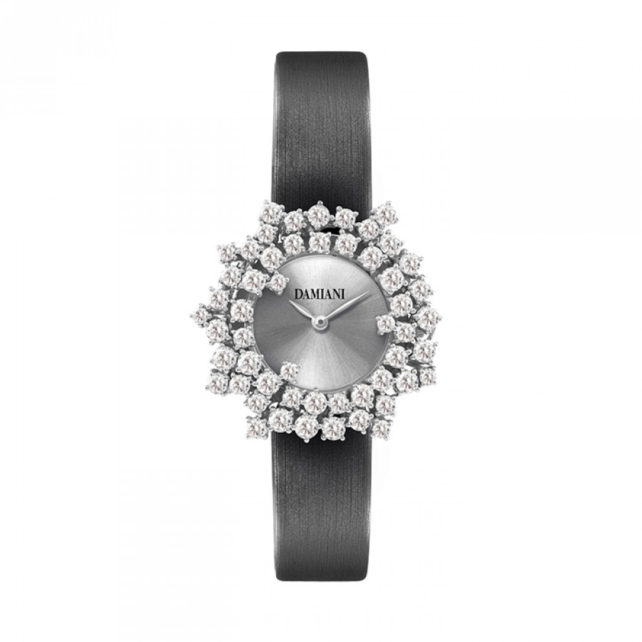 Orologio Damiani in oro bianco e diamanti, cinturino e quadrante argento collezione Mimosa.