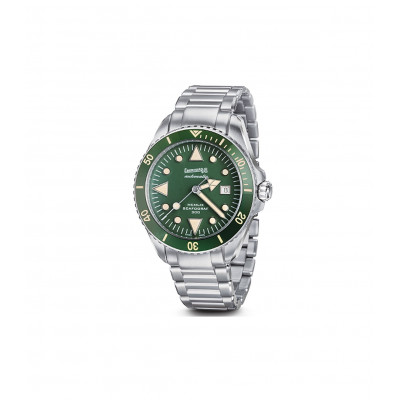 Eberhard & Co. Scafograf 300 MCMLIX, l'orologio celebrativo dell'anno di lancio della collezione Scafograf nel 1959, si arricchisce di una nuova variante cromatica verde con luminescenza vintage sul quadrante e sulla lunetta in ceramica. Scafograf 300 MCMLIX è animato da un movimento meccanico a carica automatica. È caratterizzato dalla cassa in acciaio da 43 mm, impermeabilità a 300m e dalla valvola per la fuoriuscita dell'elio per un uso professionale. Sul fondello è incisa la stella marina, emblema della collezione Scafograf. Scafograf 300 MCMLIX ha linee pulite ed eleganti che lo rendono perfetto anche fuori dall'acqua, per un uomo dinamico e sportivo.