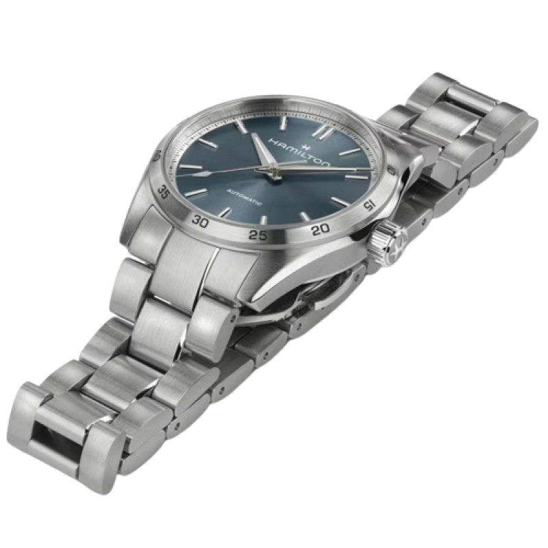 Pensata per chi ama l’equilibrio tra stile e funzionalità, la linea Jazzmaster Performer offre un look sporty-chic accattivante. Animato dal movimento automatico H-10 con riserva di carica fino a 80 ore, questo Jazzmaster Performer Automatic presenta una cassa in acciaio da 34 mm messa in risalto da un sobrio quadrante blu chiaro e un raffinato bracciale in acciaio.