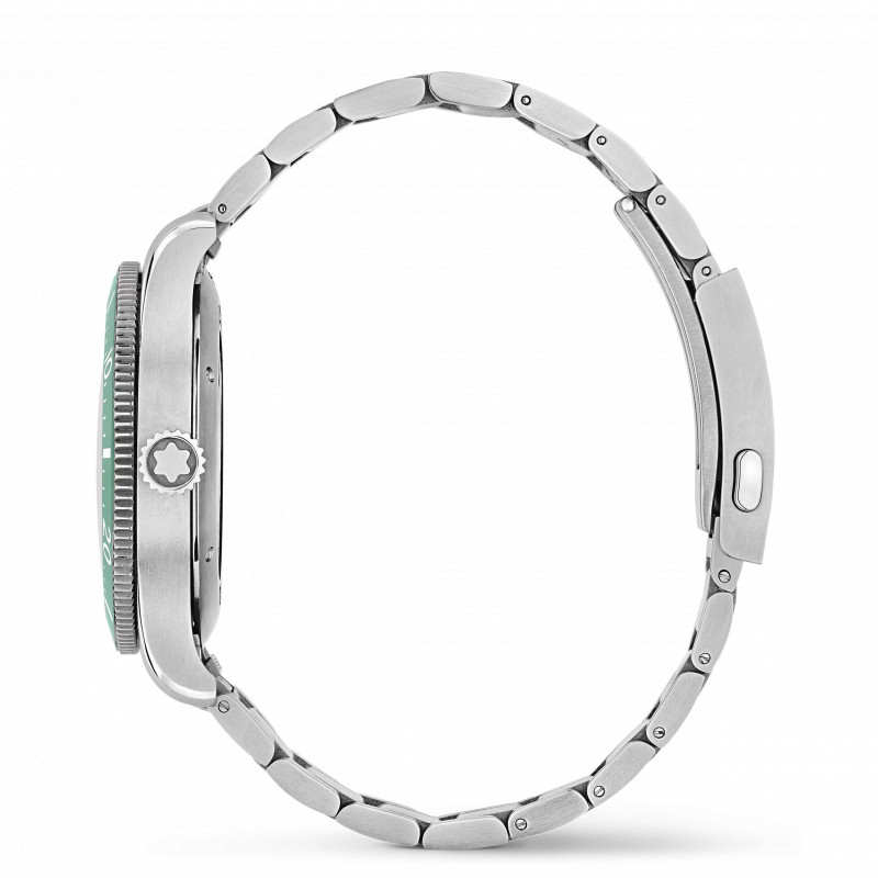 Il primo orologio da immersione sportivo di Montblanc, il Montblanc Iced Sea Automatic Date, presenta un quadrante con motivo “ghiacciaio” che dà l’impressione di guardare nelle profondità di un ghiacciaio. Questo quadrante verde con motivo “ghiacciaio” è ispirato al Mer de Glace (Mare di Ghiaccio), il ghiacciaio principale del Massiccio del Monte Bianco. La sua texture è stata ottenuta utilizzando una tecnica ancestrale quasi dimenticata chiamata gratté-boisé. Il segnatempo è racchiuso in una cassa in acciaio pregiato da 41 mm e presenta inoltre una lunetta unidirezionale in ceramica bicolore, un fondello inciso e un bracciale in acciaio pregiato intercambiabile con regolazioni raffinate, per una vestibilità perfetta. Il segnatempo è conforme alla normativa ISO 6425 per gli orologi da immersione ed è impermeabile fino a 300 metri.