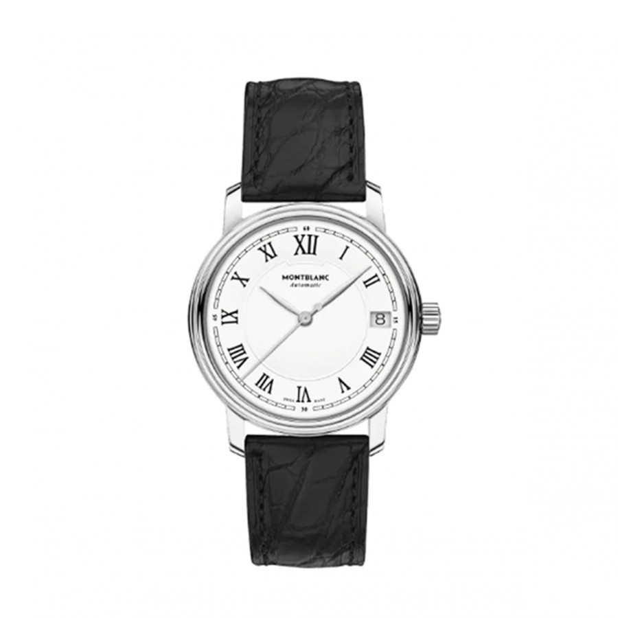 Il Montblanc Tradition vanta l’inconfondibile design Montblanc nonché i classici codici dell’arte orologiera. Il segnatempo è animato dal movimento a carica manuale MB 23.01 di Montblanc. La cassa di 32 mm in acciaio pregiato è caratterizzata dalle tipiche anse diritte Montblanc e da un’esclusiva doppia lunetta con vetro zaffiro bombato. Il design esprime I classici codici orologieri, come il quadrante bianco-argenté con numeri romani e un imponente numero “XII”. La tradizionale minuteria “chemin de fer” e le classiche lancette a foglia e a bastone completano questo look elegante.