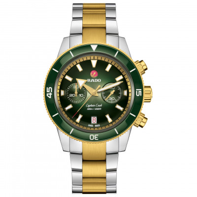 L'orologio Rado Captain Cook Automatic Chronograph è il compagno con cui partire in un viaggio all'insegna dello stile. Dotato del movimento automatico Rado calibro R801, assicura una precisione impeccabile e affidabilità. Con una riserva di carica di 59 ore e una spirale antimagnetica Nivachron™, garantisce una misurazione del tempo accurata anche negli ambienti difficili. Regolato in cinque posizioni, offre prestazioni al di sopra delle aspettative. La cassa di acciaio inossidabile lucida da 43 mm sfoggia un aspetto robusto che conferisce eleganza, mentre il cristallo zaffiro sagomato con rivestimento antiriflesso su entrambi i lati fornisce una trasparenza e una resistenza eccezionali. Questo modello è impermeabile ben fino a 30 atmosfere (300 m), per cui è pronto per accompagnarti in tutte le tue avventure acquatiche. Il quadrante è caratterizzato da un'accattivante sfumatura dal verde al nero che richiama le profondità e il fascino dell'oceano. Gli indici applicati di colore oro giallo, rivestiti in Super-LumiNova® bianca, assicurano una leggibilità eccellente anche in condizioni di scarsa luminosità. Per un'esperienza ancora più straordinaria, l'orologio è corredato di una speciale confezione che include due cinturini aggiuntivi: uno di pelle verde con fibbia pieghevole in acciaio inossidabile rivestita in PVD di colore oro giallo lucido e un altro di tessuto verde in stile NATO. Grazie a queste opzioni, potrai personalizzare facilmente il tuo segnatempo a seconda delle occasioni.