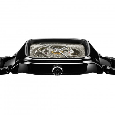 Scopri la fusione perfetta tra abilità artistica e precisione con il Rado True Square x Kunihiko Morinaga creato in collaborazione con Kunihiko Morinaga, il visionario fashion designer giapponese. Questo eccezionale segnatempo è dotato di un eccellente calibro R734 automatico Rado, con una riserva di carica di 80 ore e una molla a spirale Nivachron™. Dotato di decorazione perlage come il supporto del movimento. Realizzate in ceramica hi-tech di colore nero lucido, la cassa da 38 mm e la corona emanano un fascino elegante e contemporaneo. Il cristallo zaffiro piatto con rivestimento antiriflesso su entrambi i lati offre una trasparenza eccezionale. Il quadrante trasparente con effetto fotocromatico rende visibile o invisibile il movimento: esponendolo alla luce del sole (raggi UV), il quadrante del True Square si scurirà. Appena il sole tramonta, il colore del quadrante si modifica evolvendo prima in grigio per poi diventare di nuovo trasparente. Le lancette di colore argento, con inserto bianco e rivestite in Super-LumiNova® bianca, assicurano una visibilità eccellente e, al contempo, creano un tocco di eleganza discreta. E il bracciale in ceramica hi-tech nero lucido completa questo segnatempo offrendo comfort e resistenza.