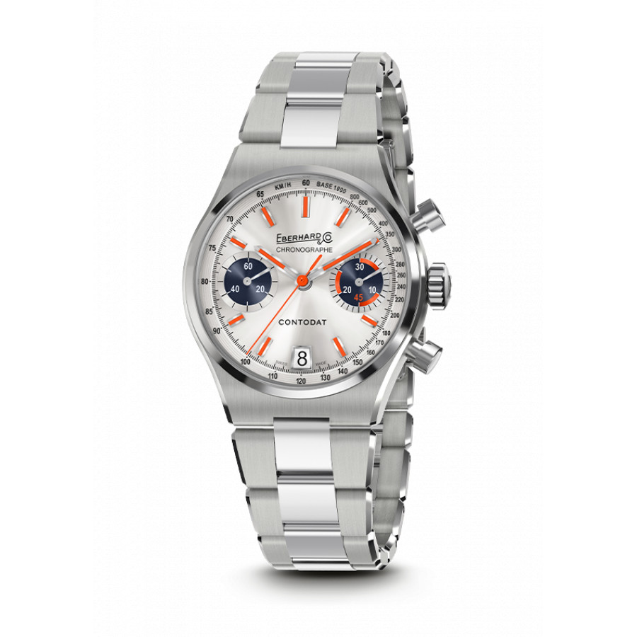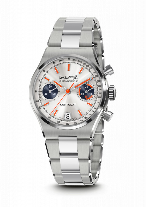 Ispirato ad un orologio Eberhard & Co. degli anni ’70, che ha sfidato l’ascesa del quarzo, Contodat – proposto in versione Chronographe e Automatic – combina caratteristiche sportive con un’aura di classicismo e un tocco di colore. Alimentato da un movimento meccanico automatico, Contodat rappresenta l’impegno della Maison nell’orologeria meccanica. Dotato di un bracciale integrato, con chiusura 2CLICK®, e di una cassa con dimensioni compatte, Contodat incarna perfettamente lo spirito innovativo della Maison senza rinunciare alla tradizione.