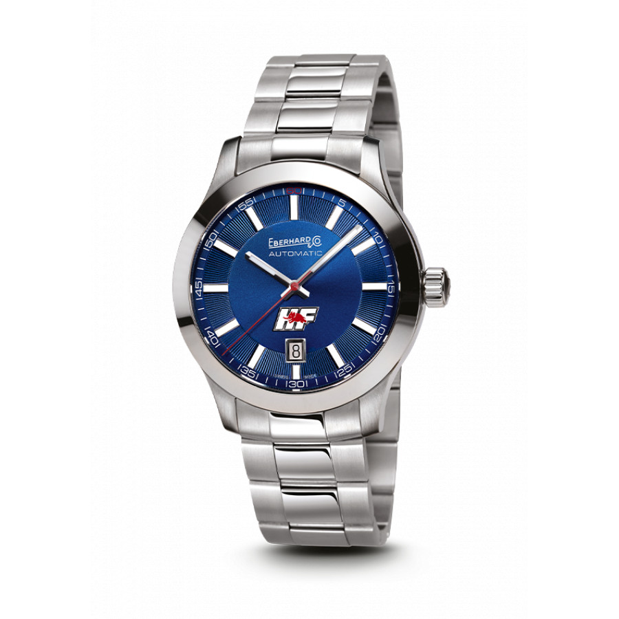 Orologio Eberhard & Co. meccanico a carica automatica della collezione Lancia HF Limited Edition quadrante blu e cinturino braccialato in acciaio. 120 esemplari.