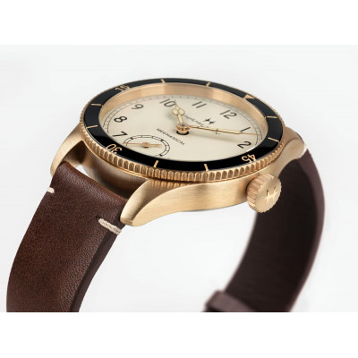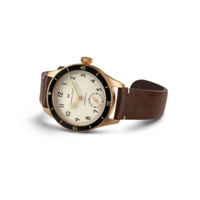 Con il suo caratteristico fascino rétro, l'Hamilton Khaki Pilot Pioneer Mechanical 43 mm continua a rendere omaggio alla ricca tradizione aeronautica e militare di Hamilton. Dotato di un movimento meccanico e di una riserva di carica di 50 ore, questo orologio presenta una cassa in bronzo con un quadrante bianco guscio d’uovo e un cinturino in pelle bordeaux, per un look che non passerà mai di moda.